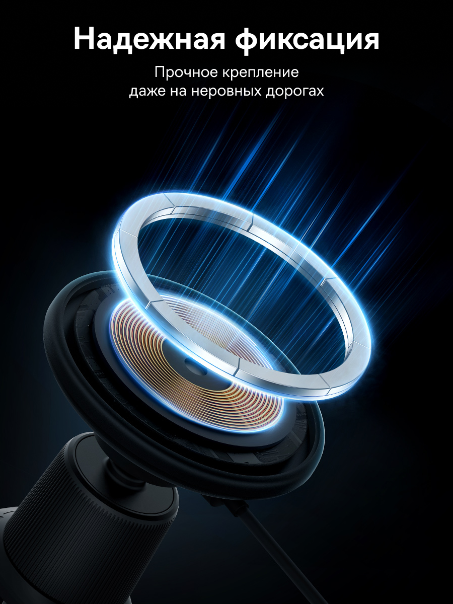 Он оснащен высококачественным магнитом NdFeB, который идеально сочетается со встроенными магнитными элементами MagSafe в устройствах Apple. Предназначен для моделей серии iPhone 12 и новее — не нужно устанавливать специальные металлические пластины. Он крепко держит телефон даже на очень сложной и неровной дороге.