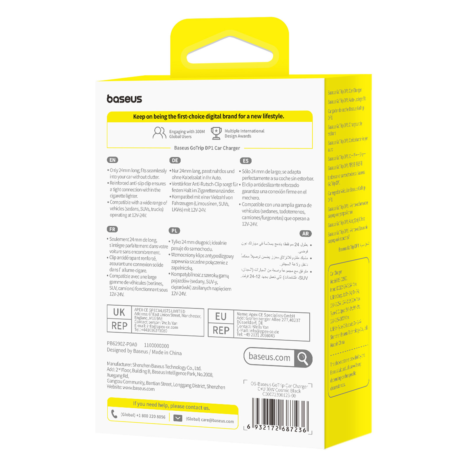 1x Автомобильная зарядка Baseus GoTrip Car Charger C+U 30W
