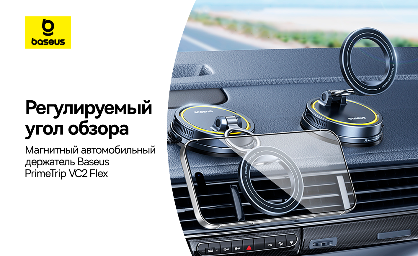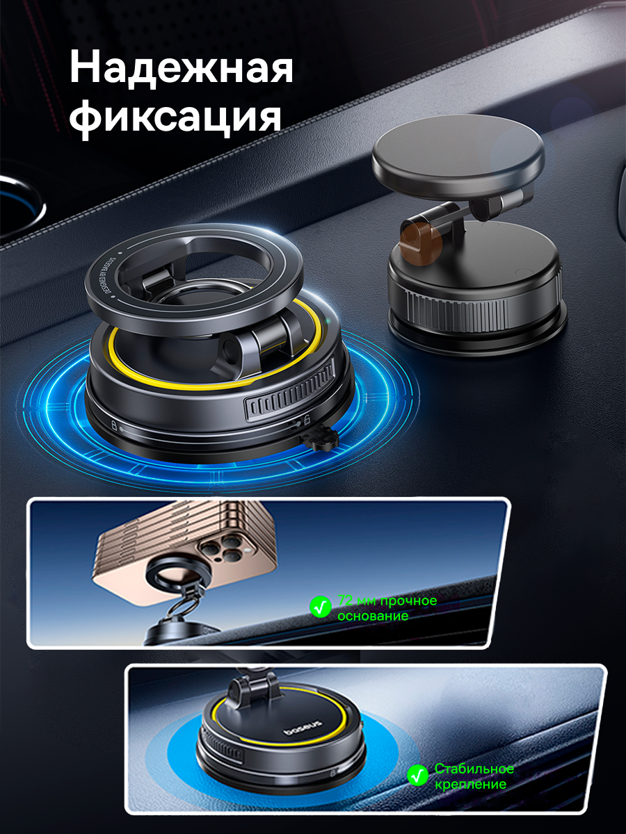 1x Автомобильный магнитный держатель OS-Baseus PrimeTrip VC2 Flex Magnetic Car Mount Suction Cup Versio