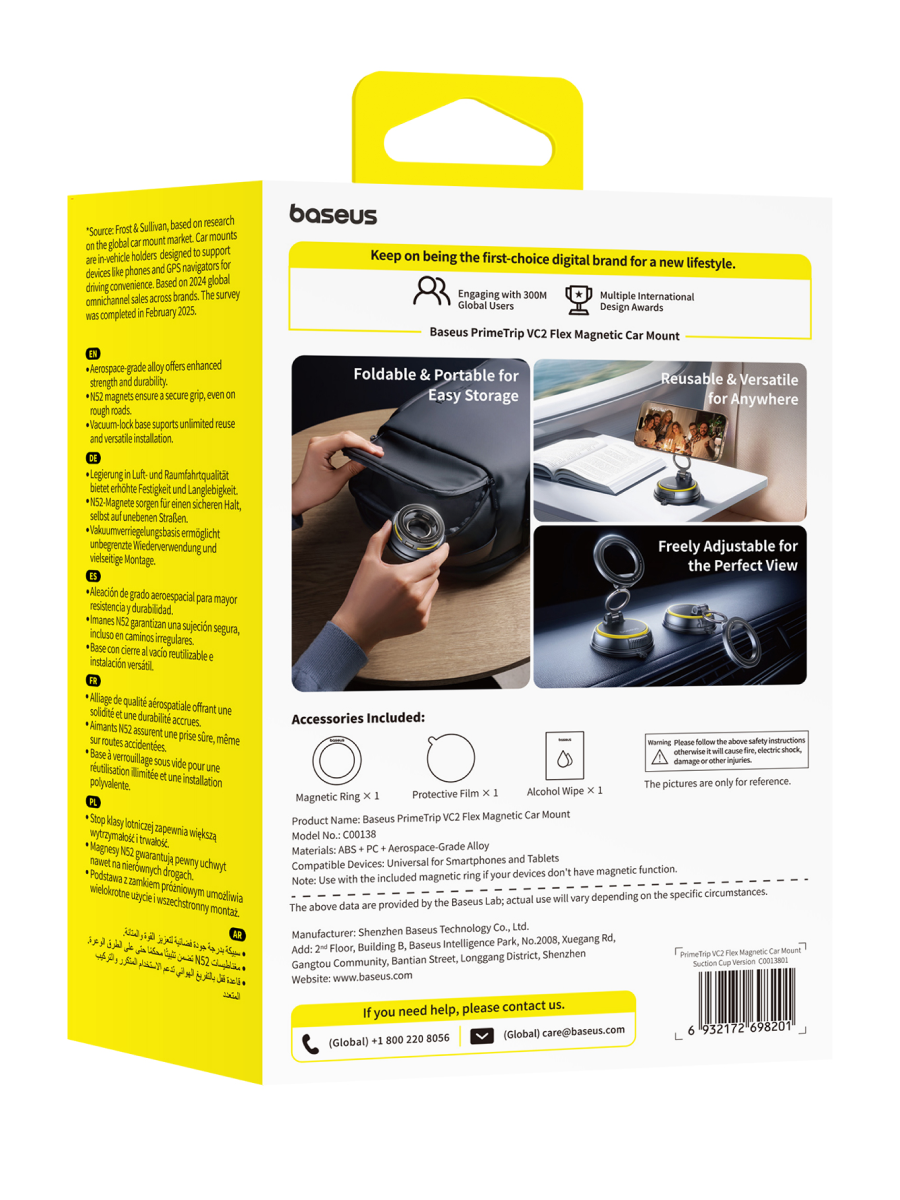 1x Автомобильный магнитный держатель OS-Baseus PrimeTrip VC2 Flex Magnetic Car Mount Suction Cup Versio
