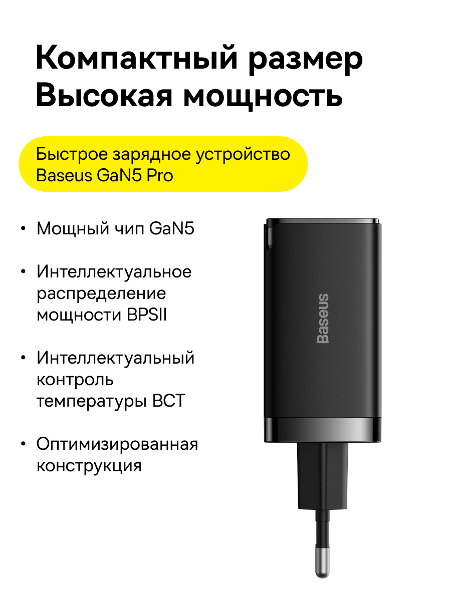 1x Зарядное устройство Baseus GaN5 Pro Fast Charger 2C+U 65W