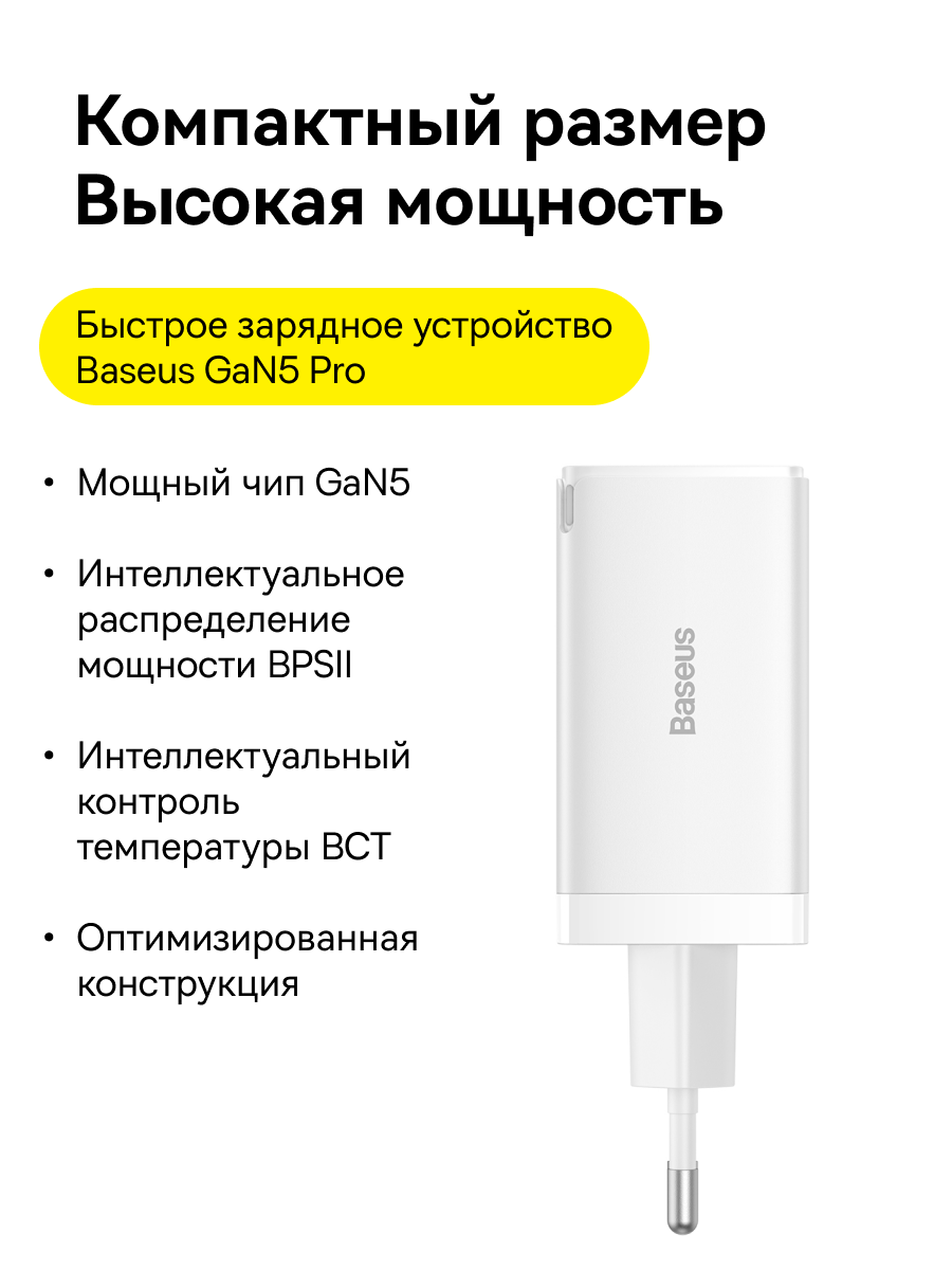 1x Зарядное устройство Baseus GaN5 Pro Fast Charger 2C+U 65W