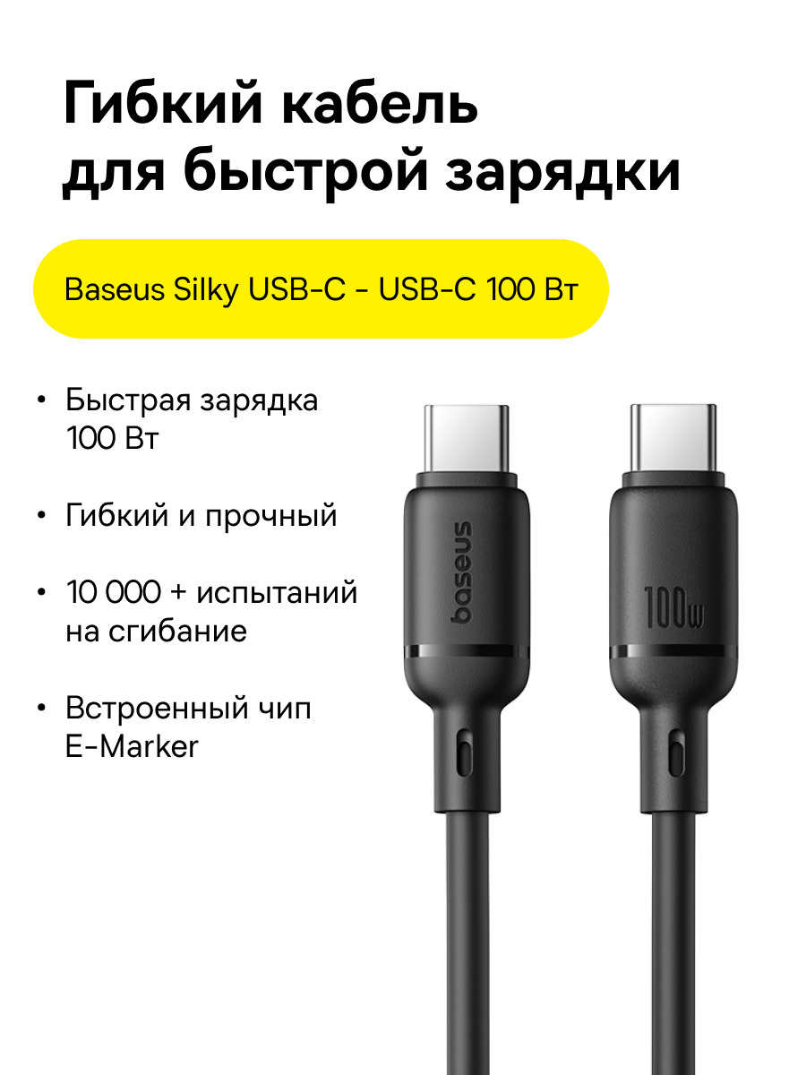 1x Кабель Baseus Silky Series Fast Charging Cable Type-C - Type-C 100W 1м