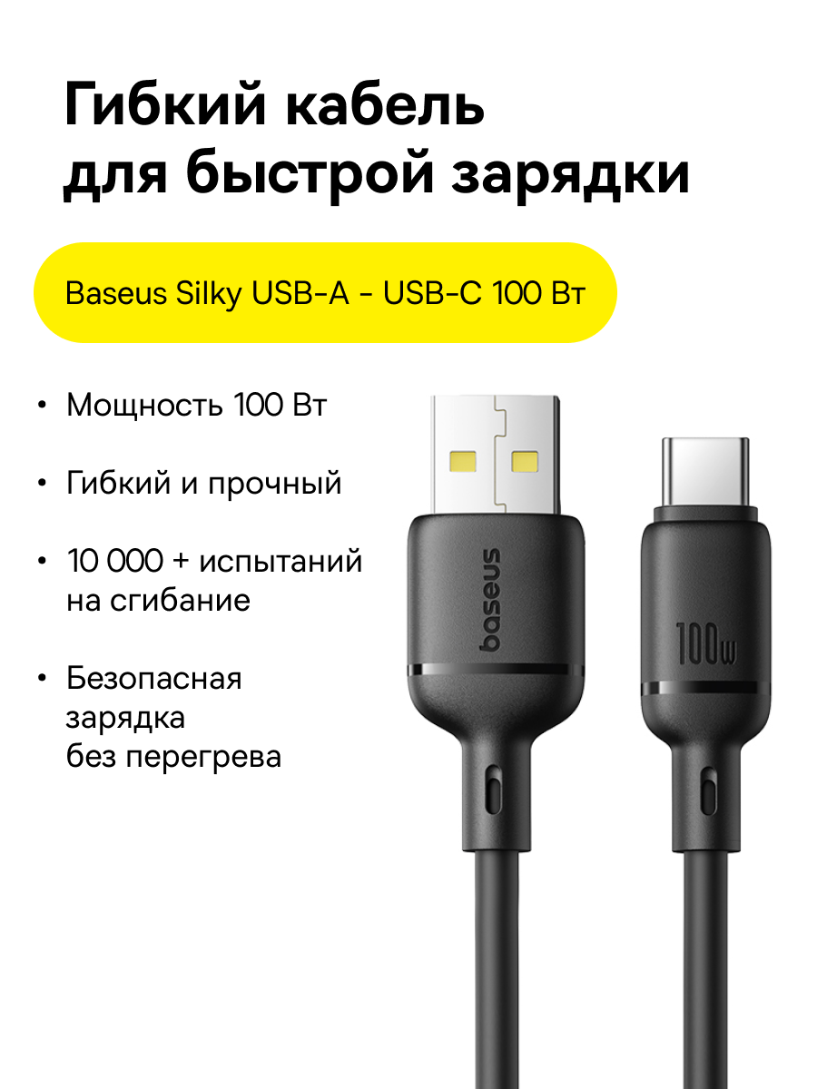 —Кабель OS-Baseus Silky Series Fast Charging Cable USB - Type-C 100W 1м Чёрный (P10377703113-00)