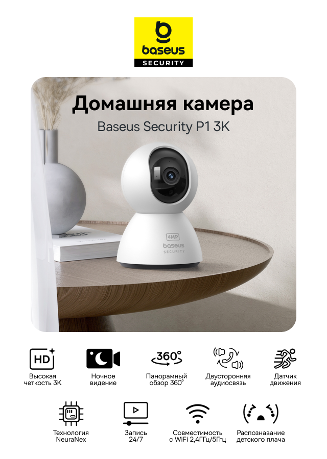 1x Камера Baseus Security P1 Indoor Camera 3K