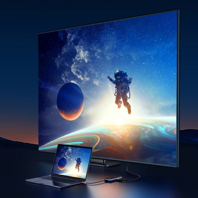 Удобно проводить презентации или смотреть фильмы на большом экране. Хаб оснащен портом HDMI, который позволяет подключить ноутбук к более крупному дисплею и обеспечивает разрешение 4K с частотой обновления до 30 Гц. Благодаря этому ни вы, ни ваши слушатели не упустите ни одной детали! Устройство также предлагает функцию автоматического сохранения экрана, которая поможет вам защитить вашу конфиденциальность. Чтобы начать или остановить отправку изображения на второй экран, просто нажмите кнопку!