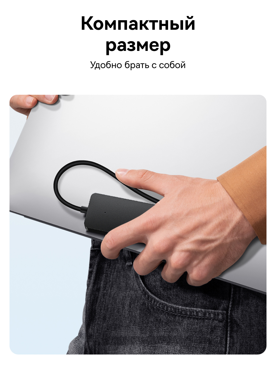 1x Хаб Baseus UltraJoy Series 4-Port HUB Lite провод 15см