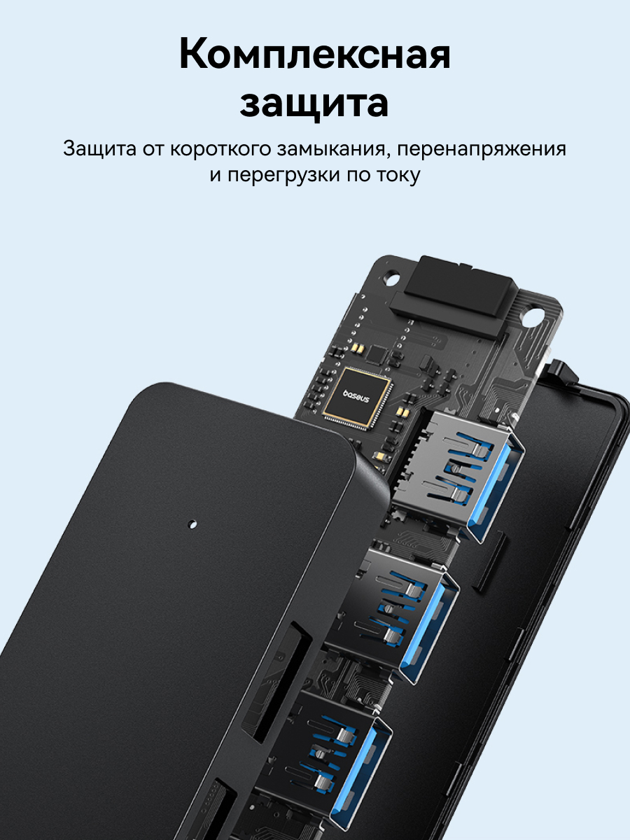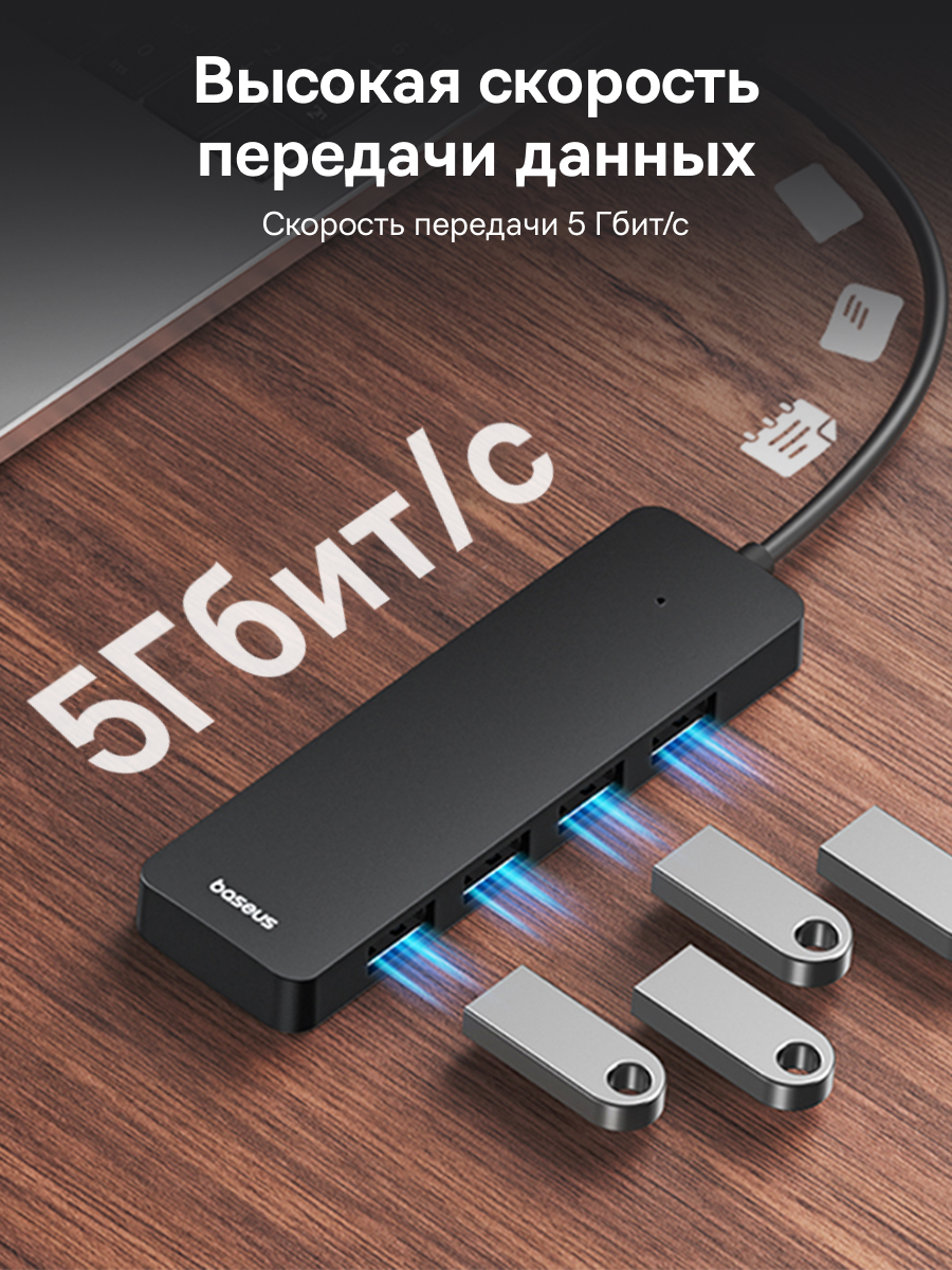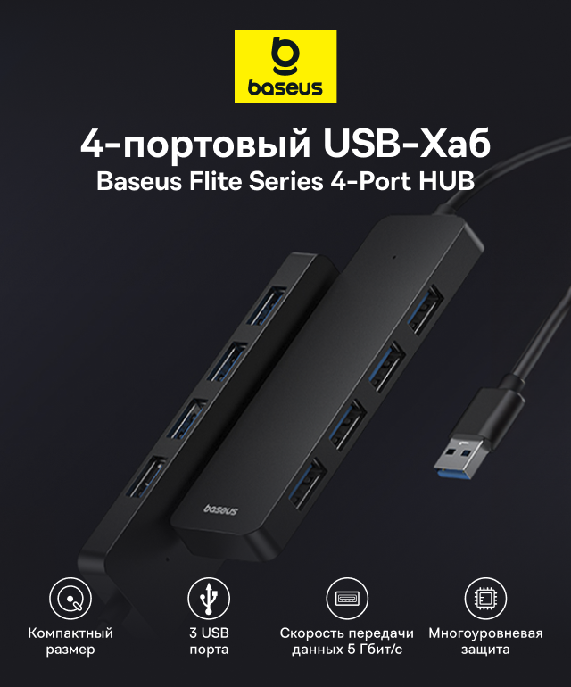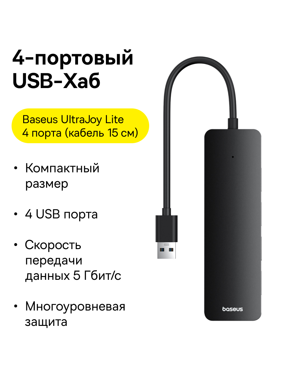 1x Хаб Baseus UltraJoy Series 4-Port HUB Lite провод 15см