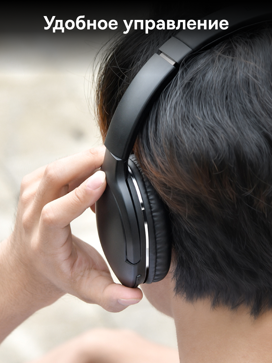 Лаконичные и аккуратные наушники мягко обхватывают голову. Благодаря тому, что длину оголовья можно регулировать, их можно легко и быстро адаптировать под практически любой размер головы. Внутренняя часть амбушюр сделана из мягкой пены и обтянута эко-кожей. Они полностью охватывают уши и плотно прижимаются к ним. Чаши наушников можно сложить внутрь изголовья: так их будет удобнее носить повсюду с собой. Все элементы управления расположены на левой чаше наушников. Всего три кнопки, нажимая на них, можно:- включить или выключить наушники;