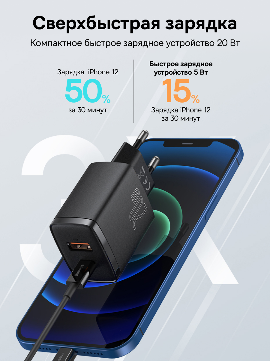 1x Зарядное устройство Baseus Compact Quick Charger U+C 20W