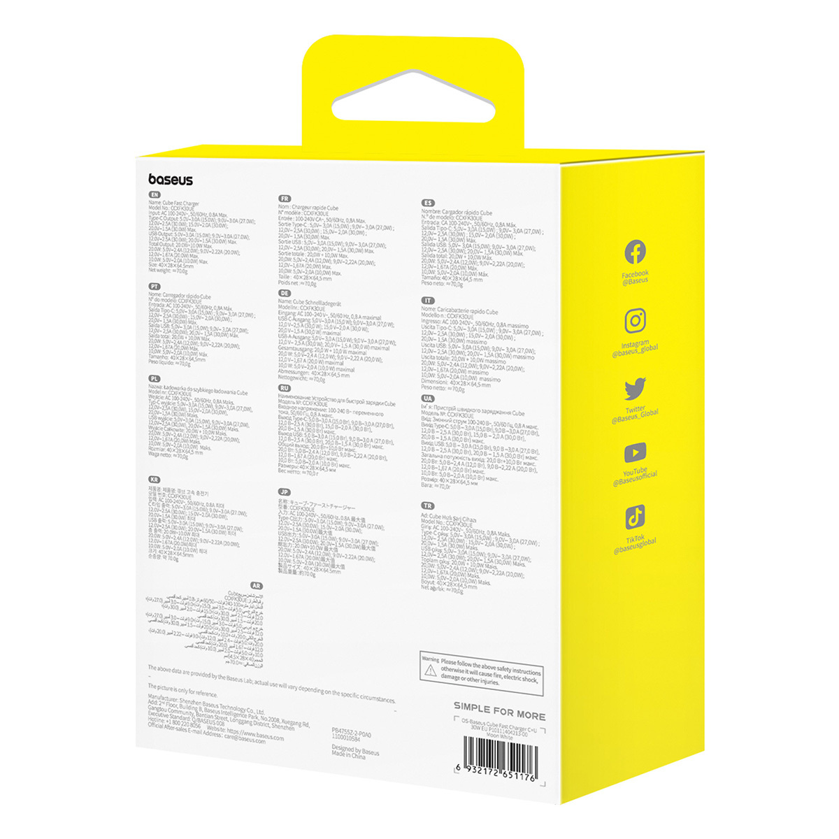 Cube Fast Charging OS-Baseus Cube Fast Charger C + U 30W - это удобное решение и надежный способ быстро и эффективно поддерживать питание ваших мобильных устройств.