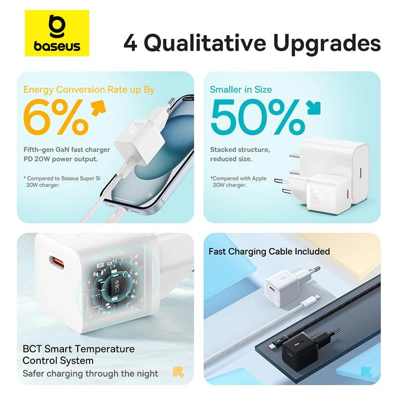 1x Зарядное устройство Baseus GaN5 Fast Charger (mini) 1C 20W