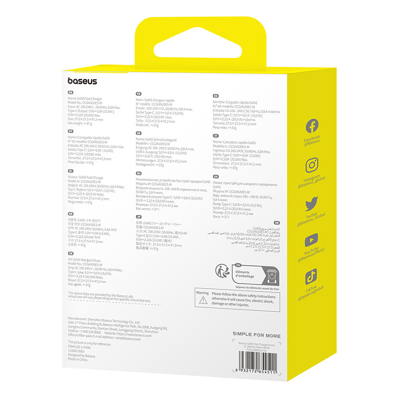 1x Зарядное устройство Baseus GaN5 Fast Charger (mini) 1C 20W