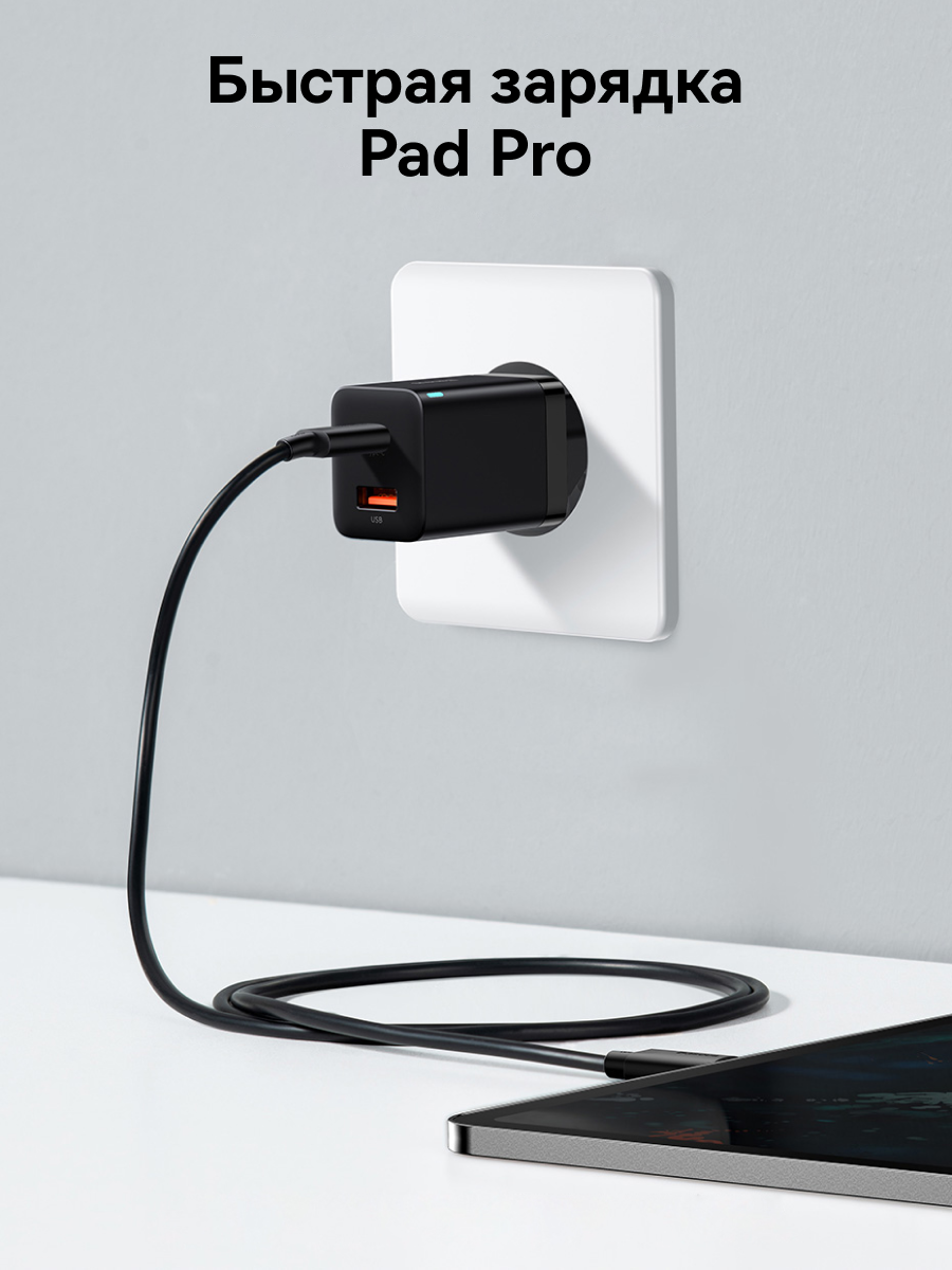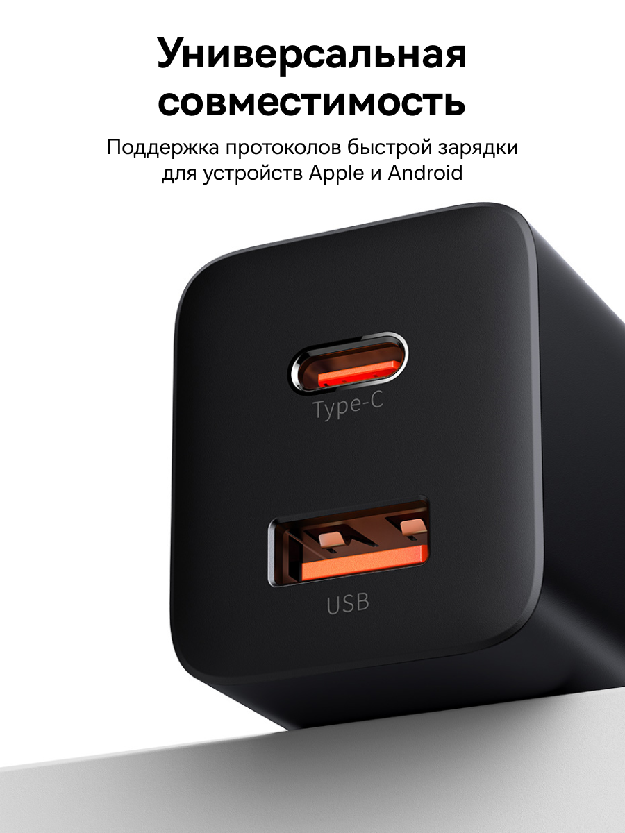 Выход | Использование только одного порта: USB Type-C: 30W Max, 5V/3A, 9V/3A, 12V/2.5A, 15V/2A, 20V/1.5A USB Type-A: 30W Max, 5V/3A, 9V/3A, 12V/2.5A, 15V/2A, 20V/1.5A Одновременное использование двух портов: USB Type-C + USB Type-A: 18W+12W |