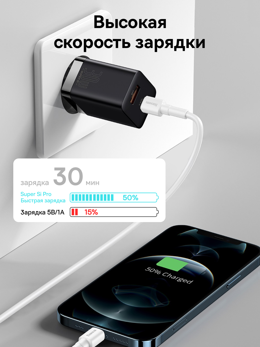 1x Зарядное устройство Baseus Super Si Pro Quick Charger C+U 30W