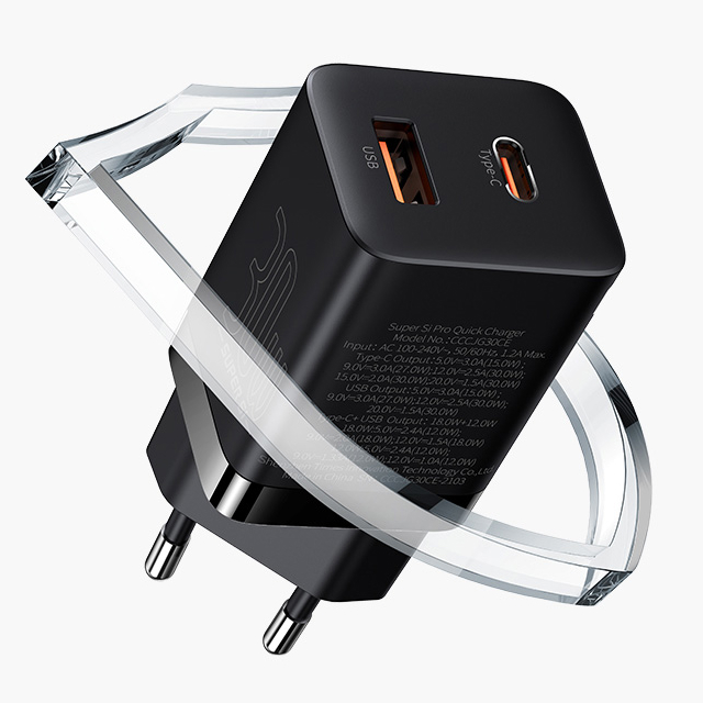 1x Зарядное устройство Baseus Super Si Pro Quick Charger C+U 30W