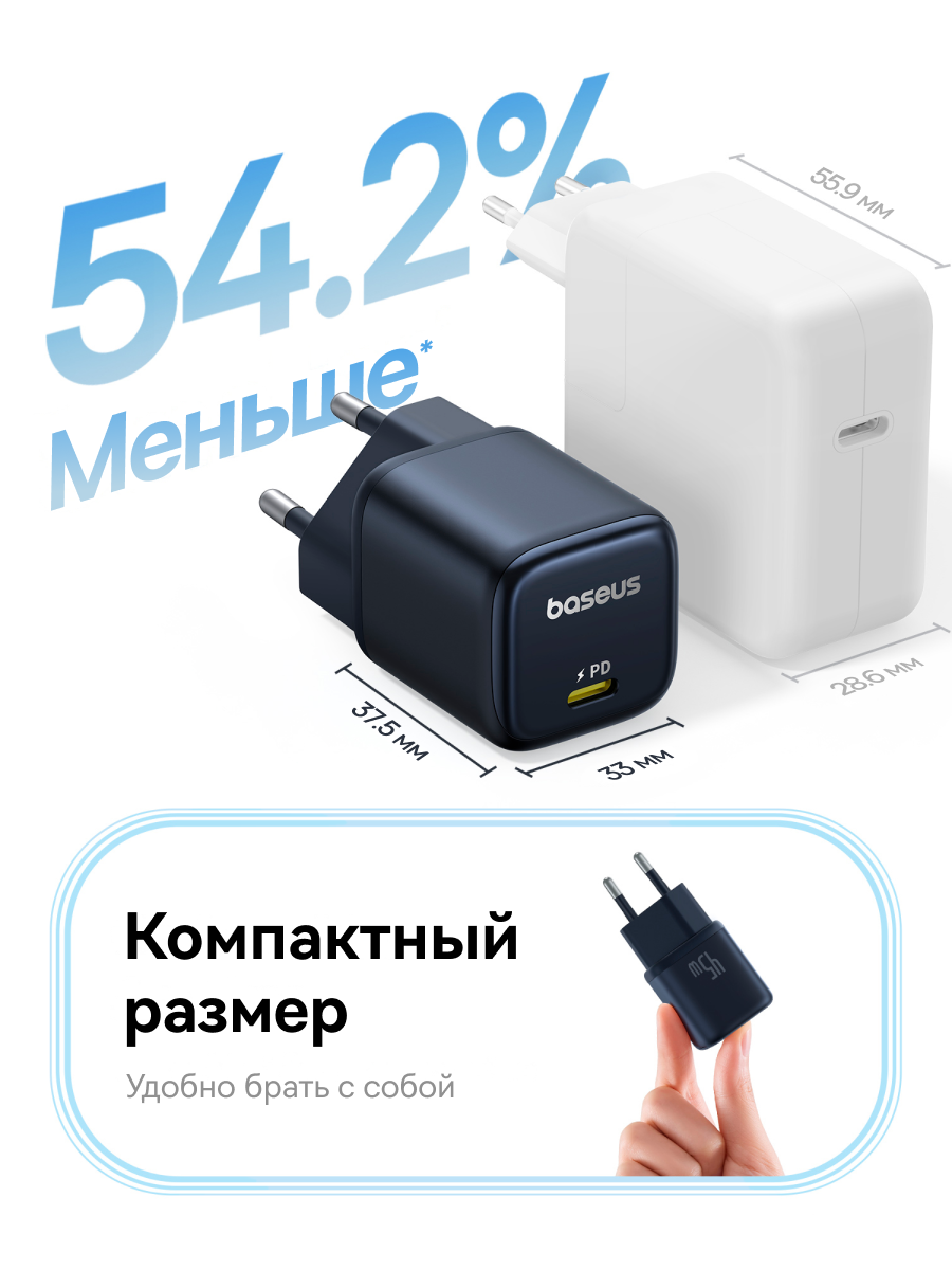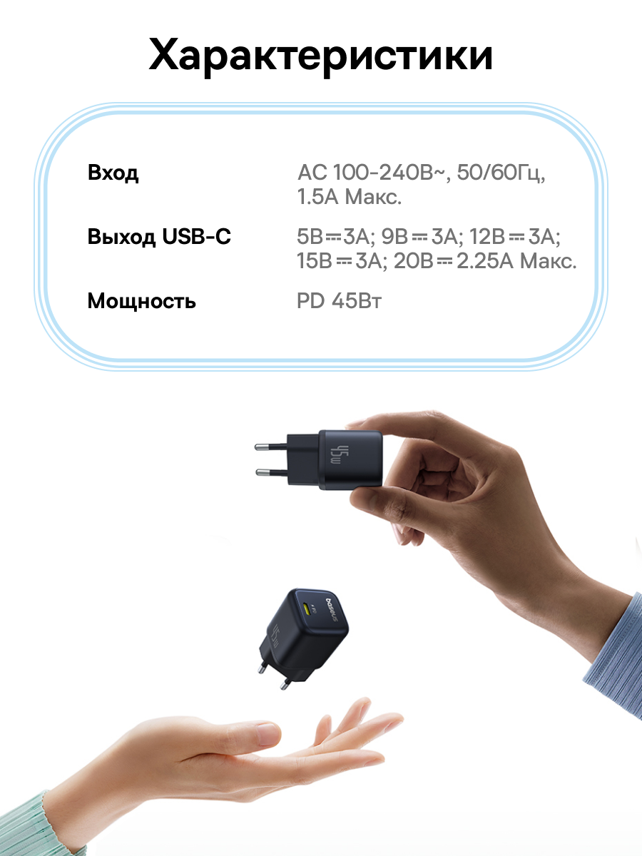 —Сетевое зарядное устройство OS-Baseus PicoGo GaN Fast Charger 1C 45W EU Чёрный (P10176800123-00)