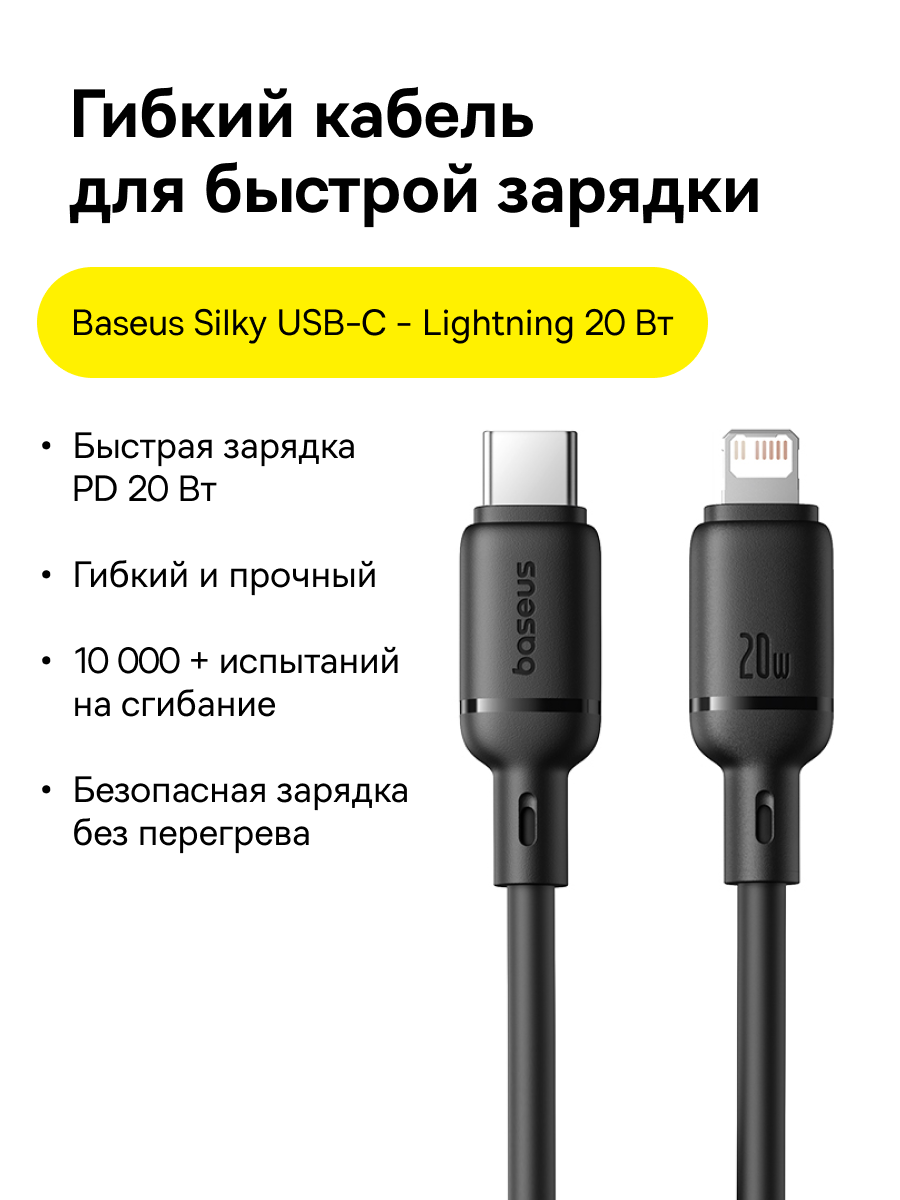 1x Кабель Baseus Silky Series Fast Charging Cable Type-C - Lightning 20W 1м
