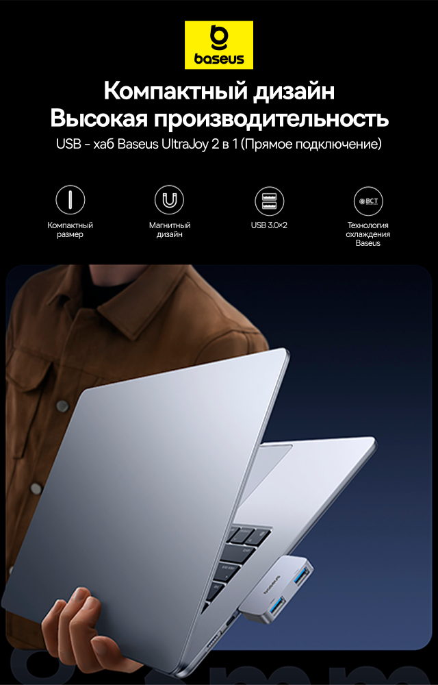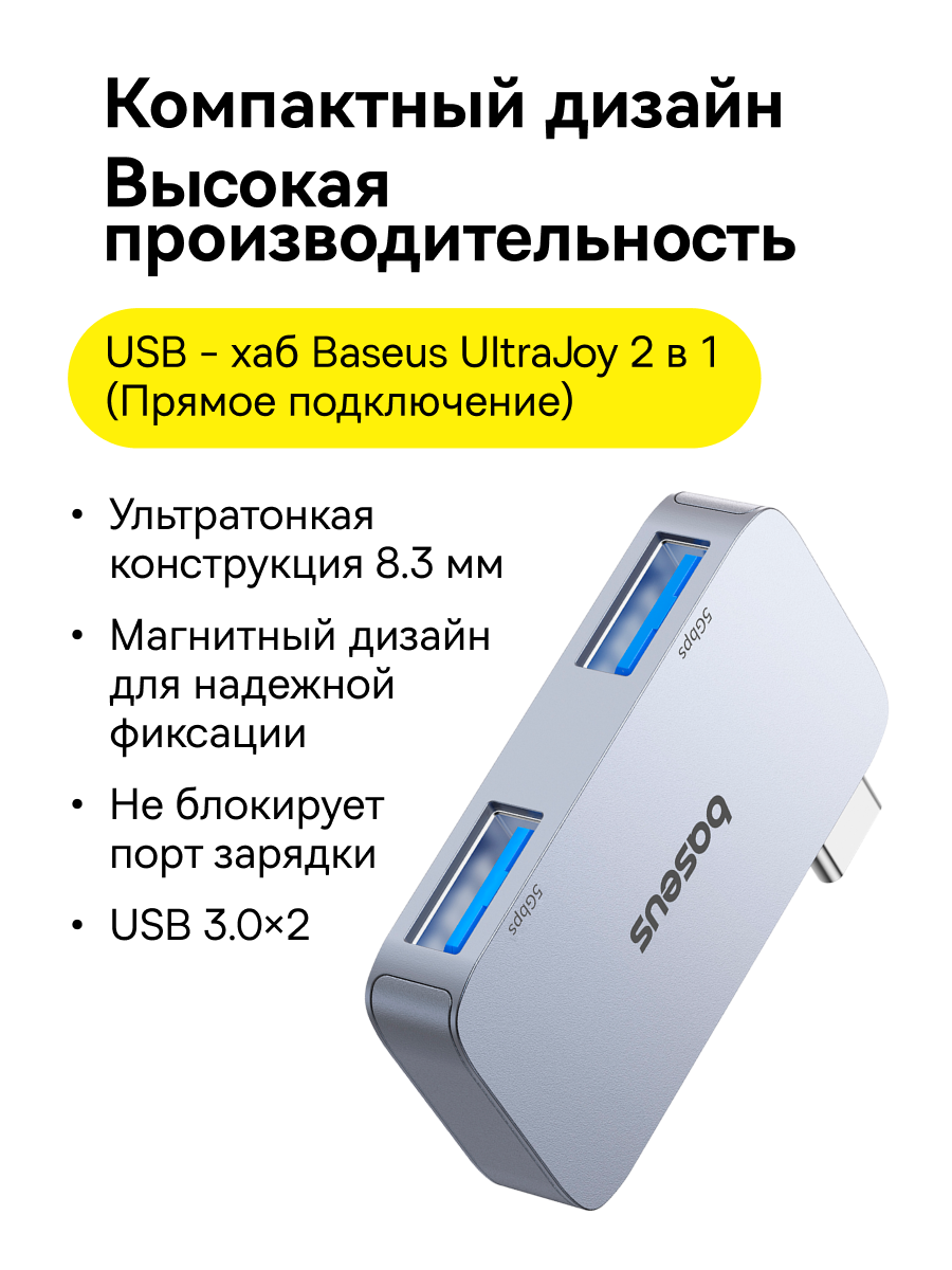 1x USB-концентратор Baseus UltraJoy Series 2-Port HUB USB-C - USB3.0*2
