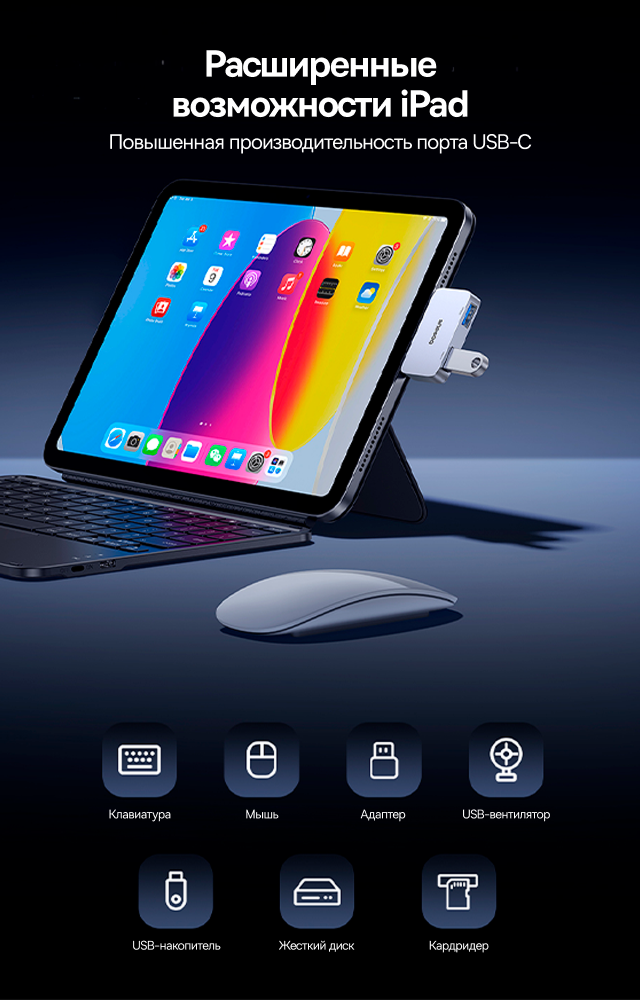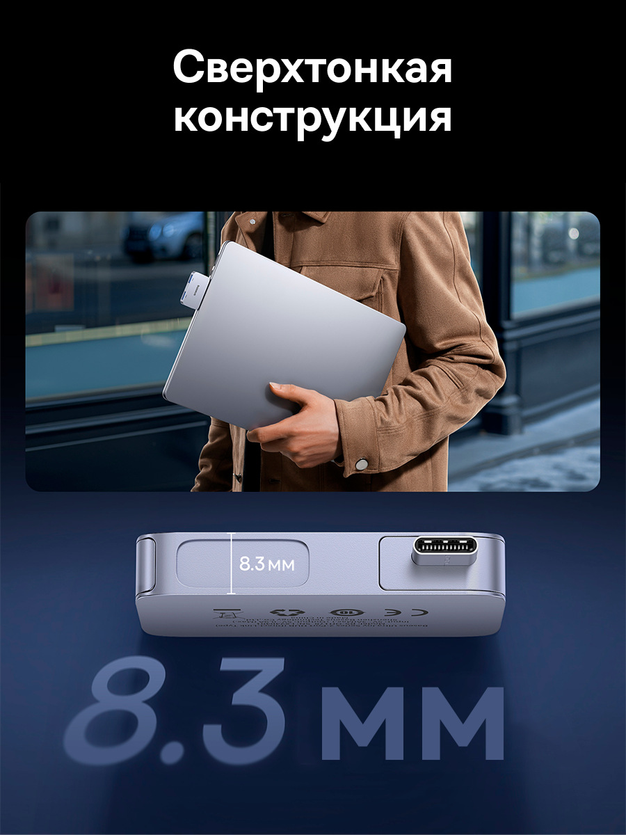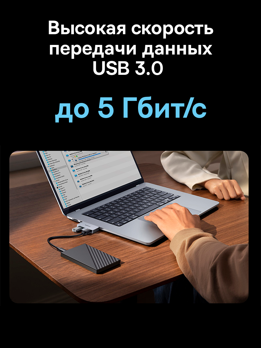 | Разъёмы | USB-C (вход) → 2 × USB-A (USB 3.0) |